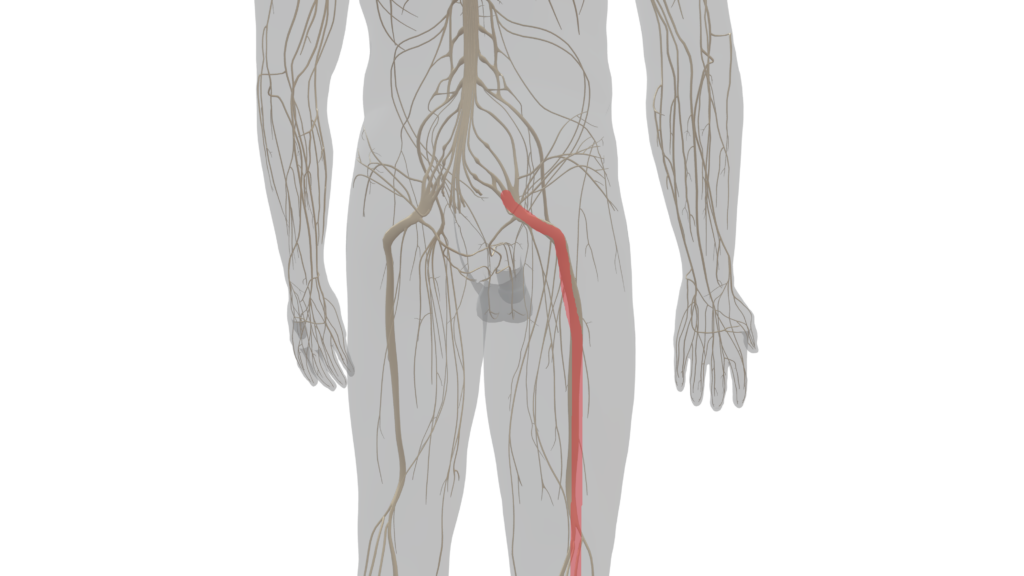 では、なぜ股関節が外に開いて固まるのか? その最大の原因のひとつとしては、太ももの裏から膝の外側にかけて走る「坐骨神経の緊張」です。神経が突っ張っていると、身体は無意識に股関節を外に向け、足首を内返しにして神経へのストレスを逃がそうとします。